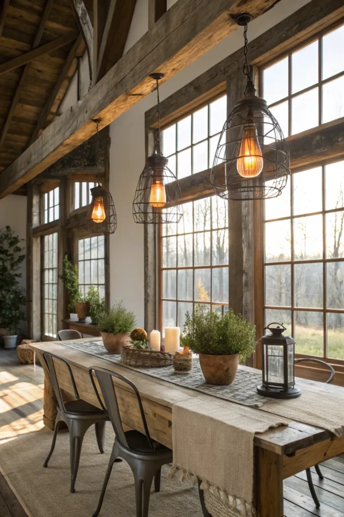 To achieve that perfect blend of rustic and modern, consider industrial farmhouse styles that feature exposed bulbs and metal finishes.